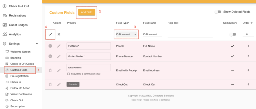 2. Add the "ID Document" custom field to visitor form