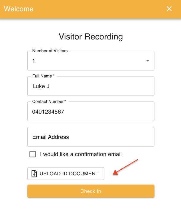 A "Upload ID Document" button will then be added to the visitor form. The button will direct your visitors to a document upload page.