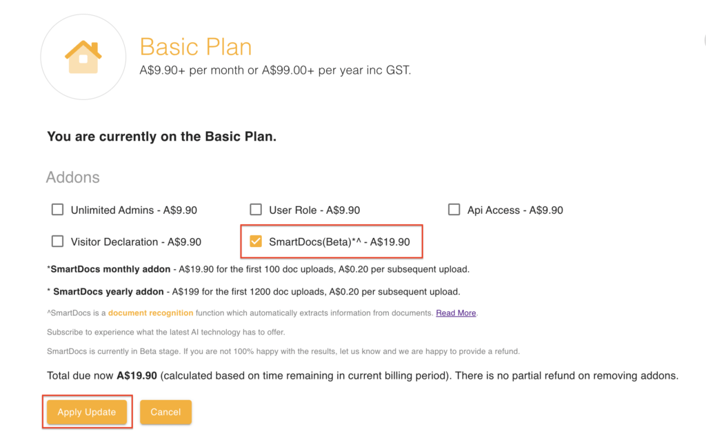 - Basic Plan Add-on: A$19.90/month for the first 100 uploads, A$0.20 per subsequent upload